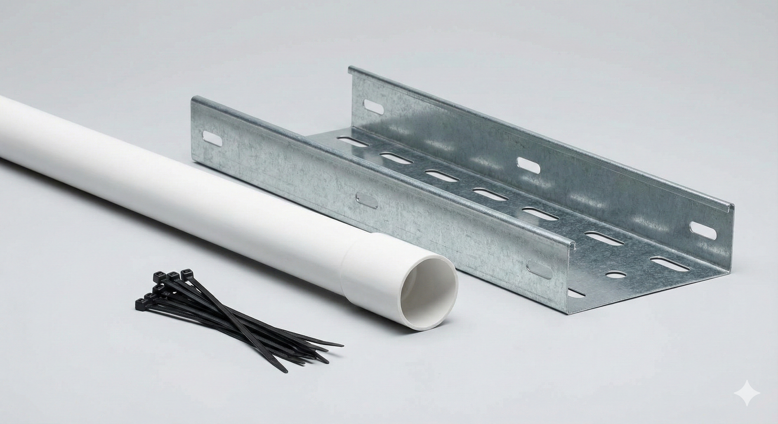 A professional commercial electrical installation is defined by how well the cabling is managed. Cable management systems protect wires from damage, support their weight, and keep installations organized for easy maintenance and upgrades. Our range includes rigid conduits for burial or wall chasing, and robust metal cable trays (ladder and perforated types) for carrying heavy bundles of power and data cables above ceilings or in plant rooms.